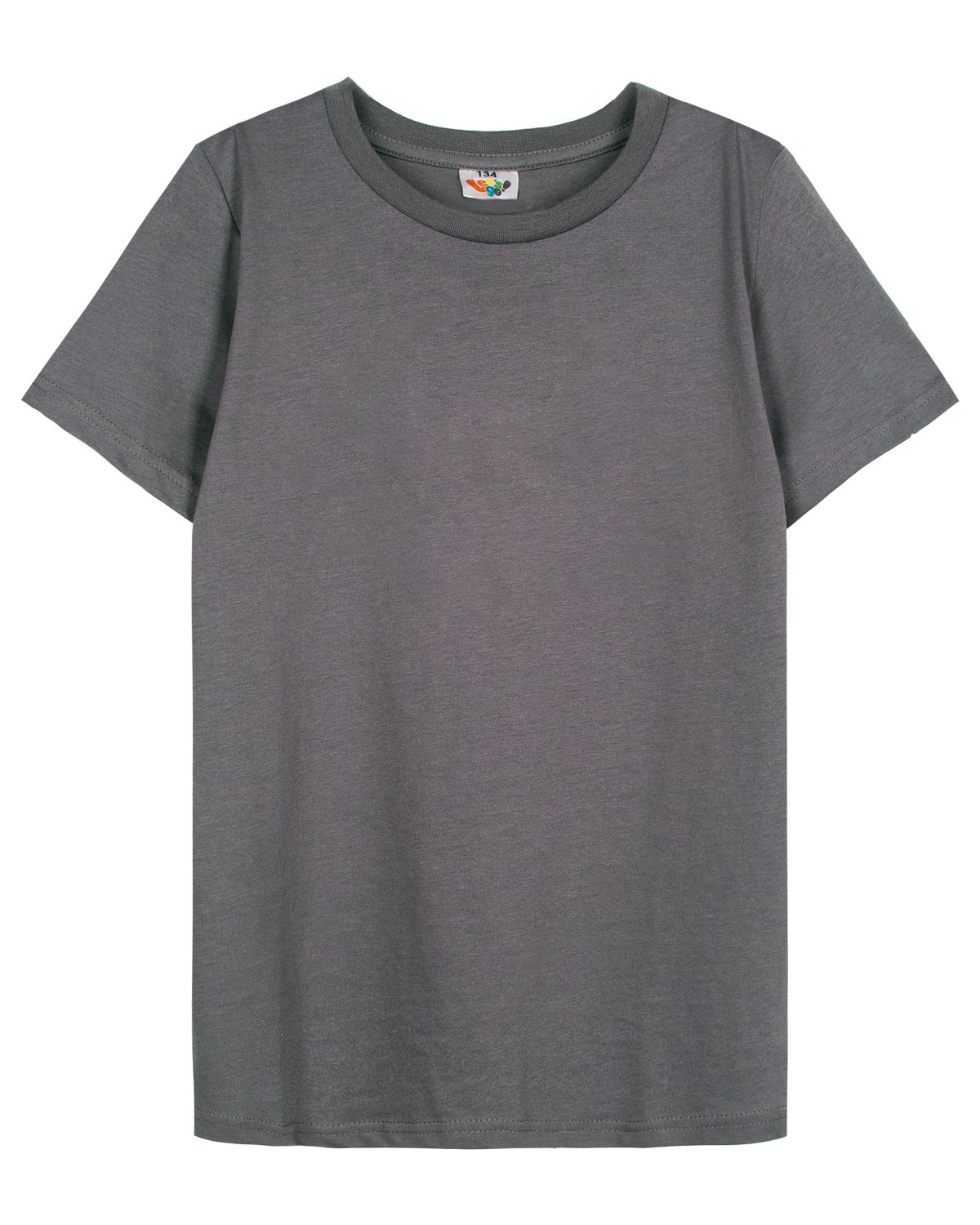 Футболка детская прямого силуэта с втачным коротким рукавом. Горловина круглая обработана воротником из рибаны. Горловина спинки внутри обработана настрочной планкой из кулирки. Низ изделия и рукавов обработан швом в подгибку. На спинке принт шелкография.