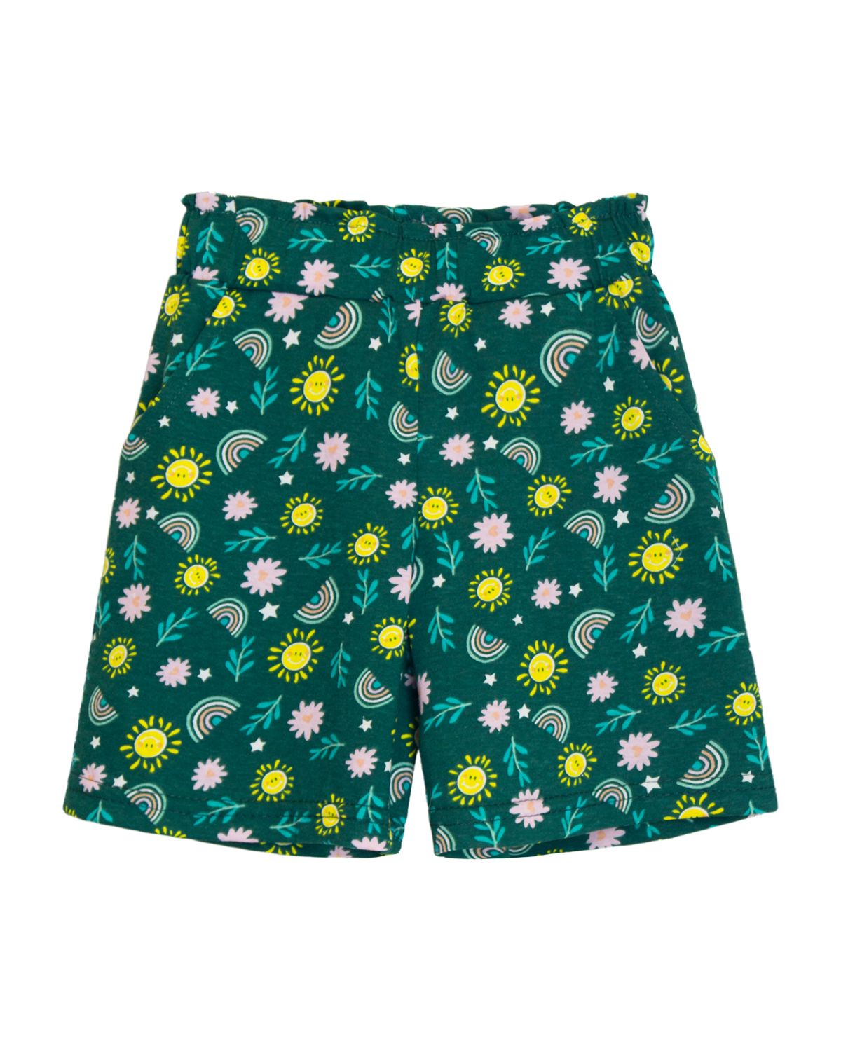 Стильные шорты с яркими принтами порадуют любую модницу! Модель шорт невероятно удобная: высококачественный хлопок делает изделие мягким, обеспечивает идеальную посадку и гарантирует сохранение формы изделия даже после многочисленных стирок. Модные шорты для девочки - это идеальный выбор для занятий спортом, прогулок или удобной домашней одежды. Отрезной пояс из основного полотна, с эластичной тесьмой внутри. На передней половинке шорт карманы с отрезным бочком. Низ изделия обработан швом в подгибку.