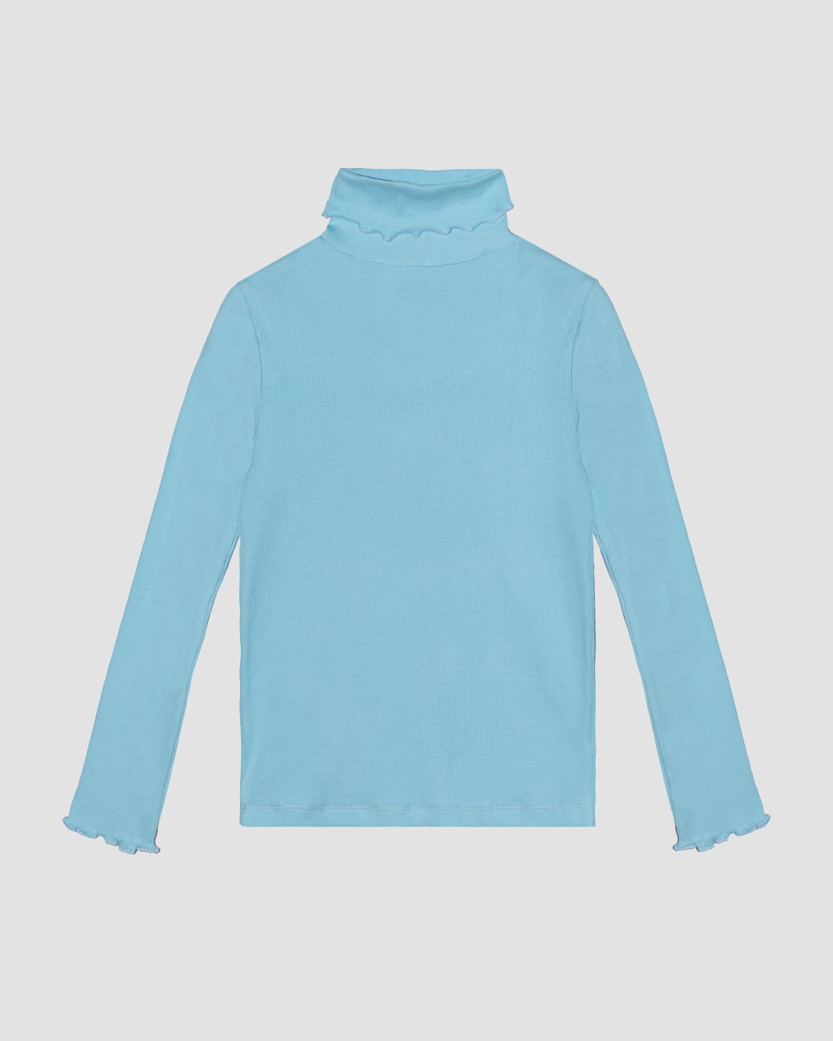 Водолазка для девочки прямого кроя с втачным длинным рукавом. Горловина круглая, обработана воротником-стойкой. Край вортника и низ рукава обработан закруткой. Низ изделия обработан швом в подгибку.