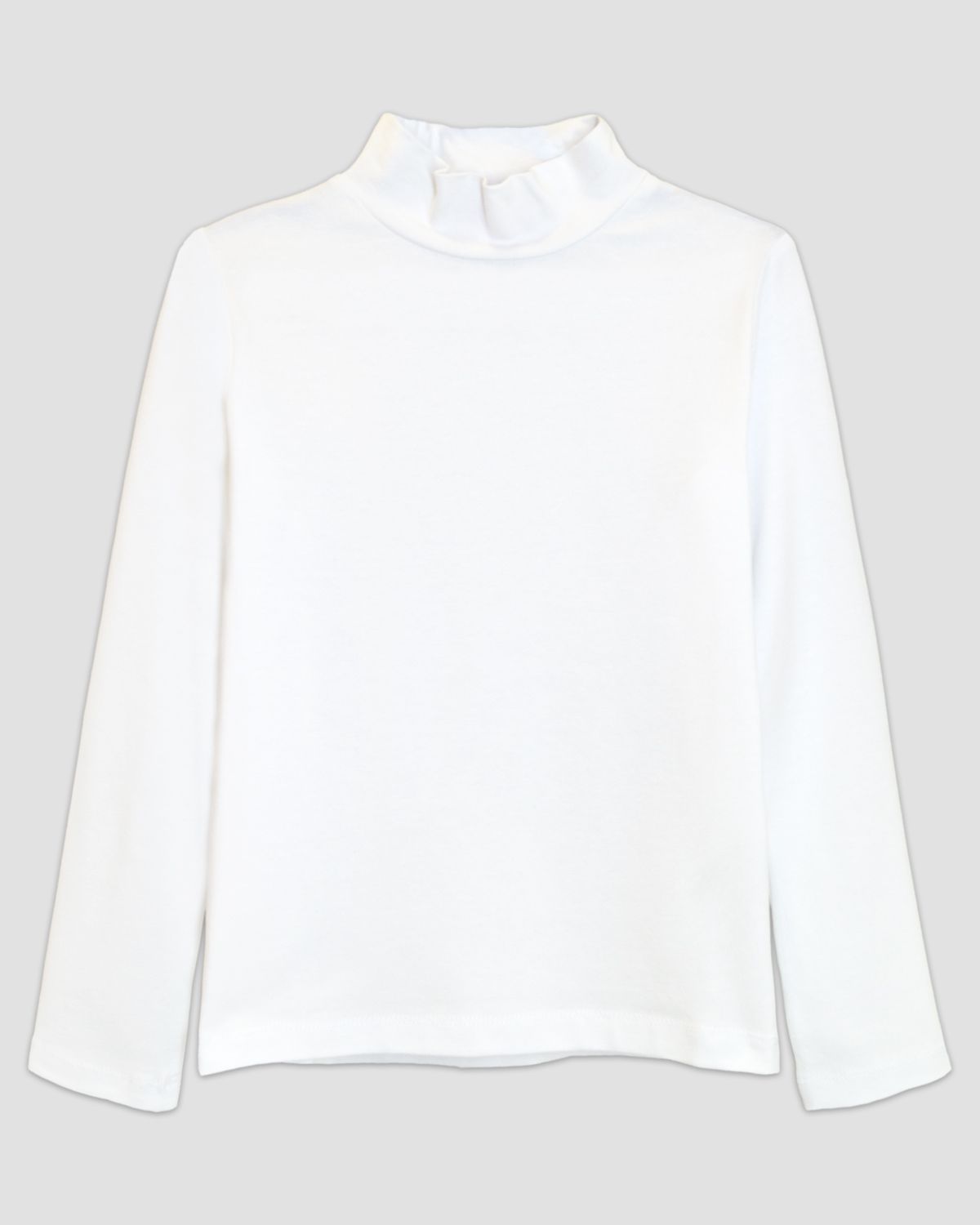 Водолазка детская прямого покроя с втачным длинным рукавом. Горловина круглая, обработана воротником-стойкой из кулирки, в цвет изделия. Низ изделия и рукавов обработан швом в подгибку, шириной 2 см, нитками в цвет изделия.