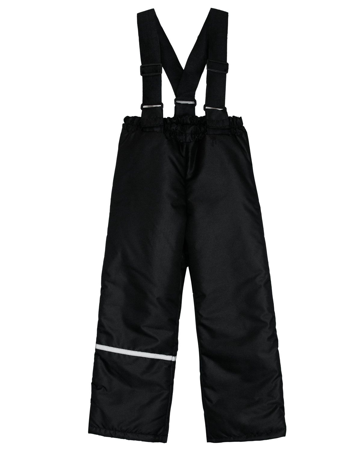 Брюки с регулировкой лямок, без карманов. Внутри брюк присутствуют специальные манжеты на резинке, предотвращающие попадание снега. Утеплитель - синтепон плотнотью 150, прекрасно сохраняет тепло, а ткань верха (Dobbi membrane 3000/3000, с плотностью 150). Обеспечивает отвод влаги. Наличие светоотражающей ленты обеспечивает безопасность.
