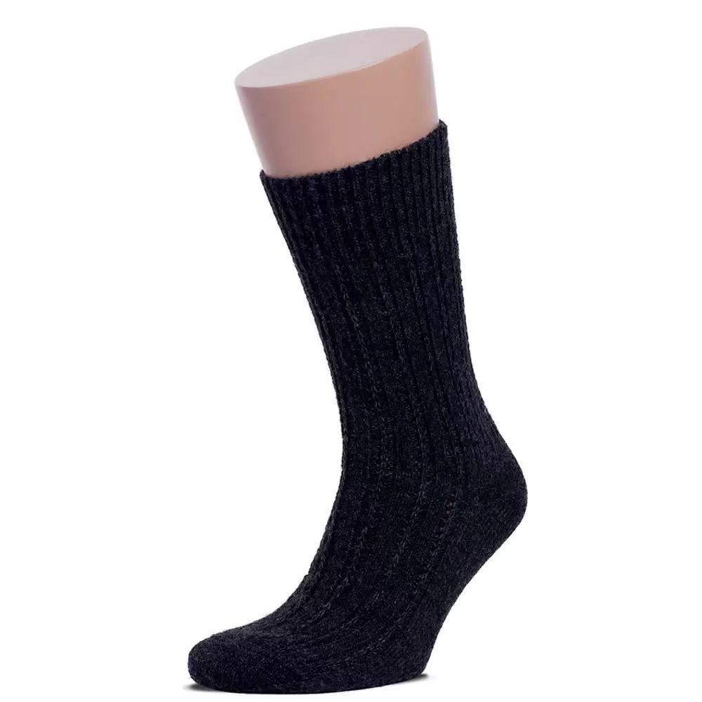 Носки мужские полушерстяные с одинарным бортом и рисунком в виде продольных полос.