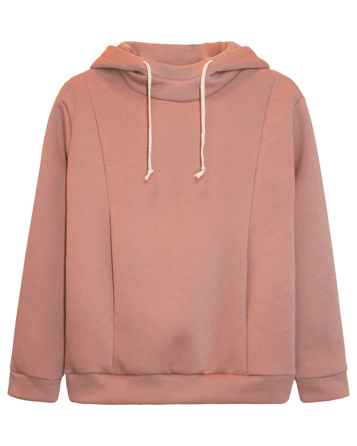 Изделия прямого силуэта, умеренного объема, длиной до середины бедра. Перед с рельефами из плечевого шва до низа изделия (рельеф смещен относительно выступающей точки грудной железы), с карманами в шве рельефов (с общей мешковиной по типу «кенгуру»). Рукав втачной, длинный, одношовный, низ рукава обработан притачной манжетой из основного полотна. Линия проймы спущена относительно плечевой точки на 5 см. Капюшон умеренного объема, шлемовидный, с отрезной центральной частью, с подкладкой из основного материала; в переднем срезе капюшона обработана кулиска с плавной регулировкой прилегания при помощи шнура. Для выведения на лицевую сторону концов шнура установлены петли. Низ изделия обработан притачным поясом из основного полотна. Модель рассчитана на рост 164-170см.