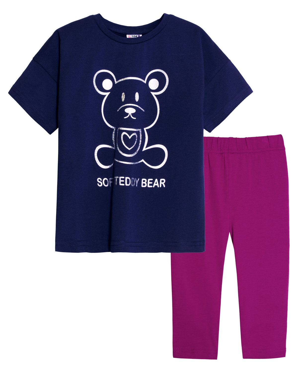 Комплект для девочки выполнен из экологичного хлопка. Ткань легкая, приятная к телу, хорошо пропускает воздух и обеспечит комфорт ребенку во время летних прогулок или носки дома. Футболка прямого силуэта с спущенным рукавом. Горловина круглая, обработана воротником из кулирки. Низ изделия и рукава обработан швом вподгибку. На полочке принт фольгирование. Бриджи для девочки прилегающего силуэта. Пояс цельнокроенный, с эластичной тесьмой внутри, закрепленной в шов. Низ бридж обработан швом в подгибку.