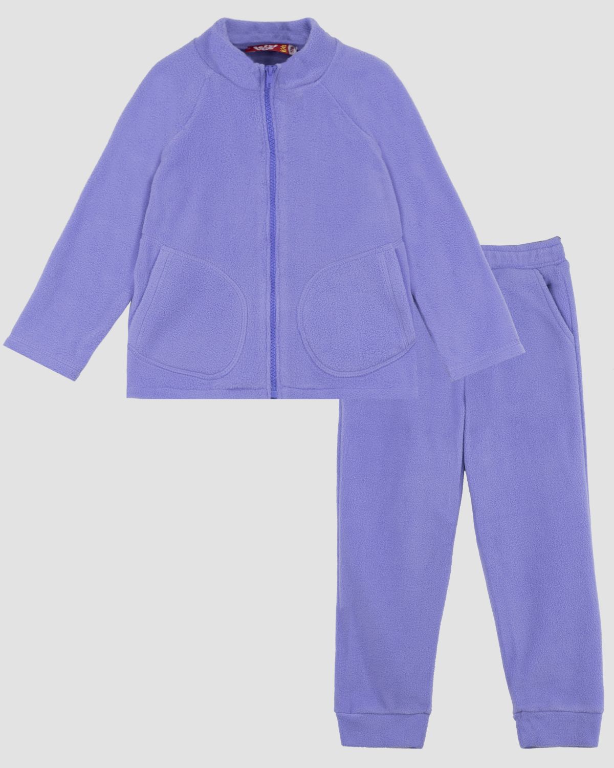 Детский флисовый костюм на молнии. Универсальная модель джемпер флисовый на молнии с воротником-стойкой. Рукав реглан-делает более гибким и комфортным в движении рук малыша. Карманы фигурные, накладные. Брюки флисовые свободного кроя. Пояс отрезной, выполнен из основного полотна, с эластичной тесьмой внутри, тесьма закреплена в шов. По низу изделия манжеты из основного полотна.