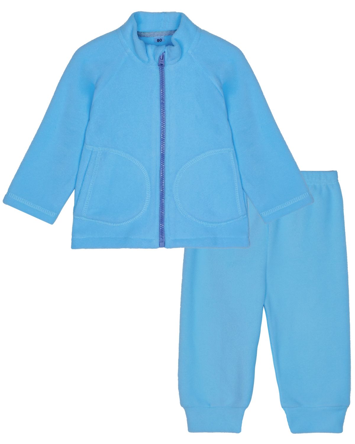 Детский флисовый костюм на молнии. Универсальная модель джемпер флисовый на молнии с воротником-стойкой. Рукав реглан-делает более гибким и комфортным в движении рук малыша. Карманы фигурные, накладные. Брюки флисовые свободного кроя. Пояс отрезной, выполнен из основного полотна, с эластичной тесьмой внутри, тесьма закреплена в шов. По низу изделия манжеты из основного полотна.