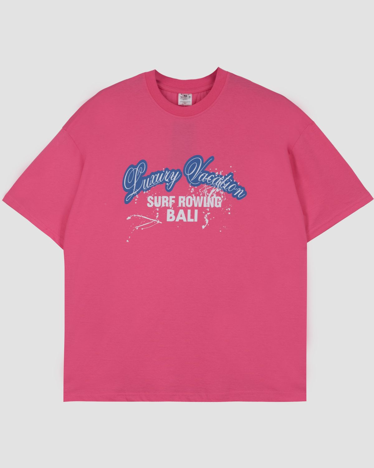 Футболка женская (оверсайз) свободного силуэта, с коротким рукавом. Горловина круглая, обработана воротником из рибаны. Горловина спинки внутри обработана бейкой из кулирки. Низ изделия и рукавов обработан швом вподгибку. На полочке принт ШЕЛКОГРАФИЯ. Надпись переводится как "Роскошный отдых;Серфинг на Бали". Модель рассчитана на рост 164-170.